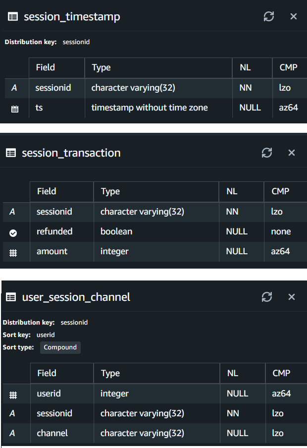 이를 위해서는 Redshift에 다음과 같은 테이블이 필요하다.