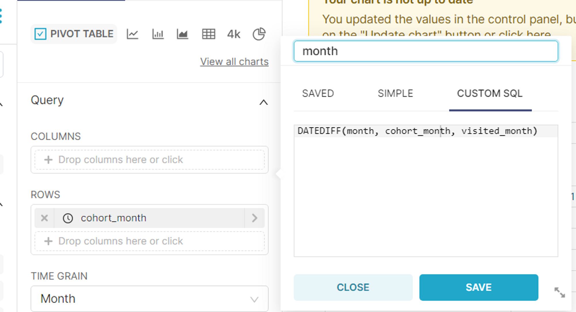 - DATEDIFF 함수를 써서 cohort랑 visited 간의 개월수 차이를 계산함