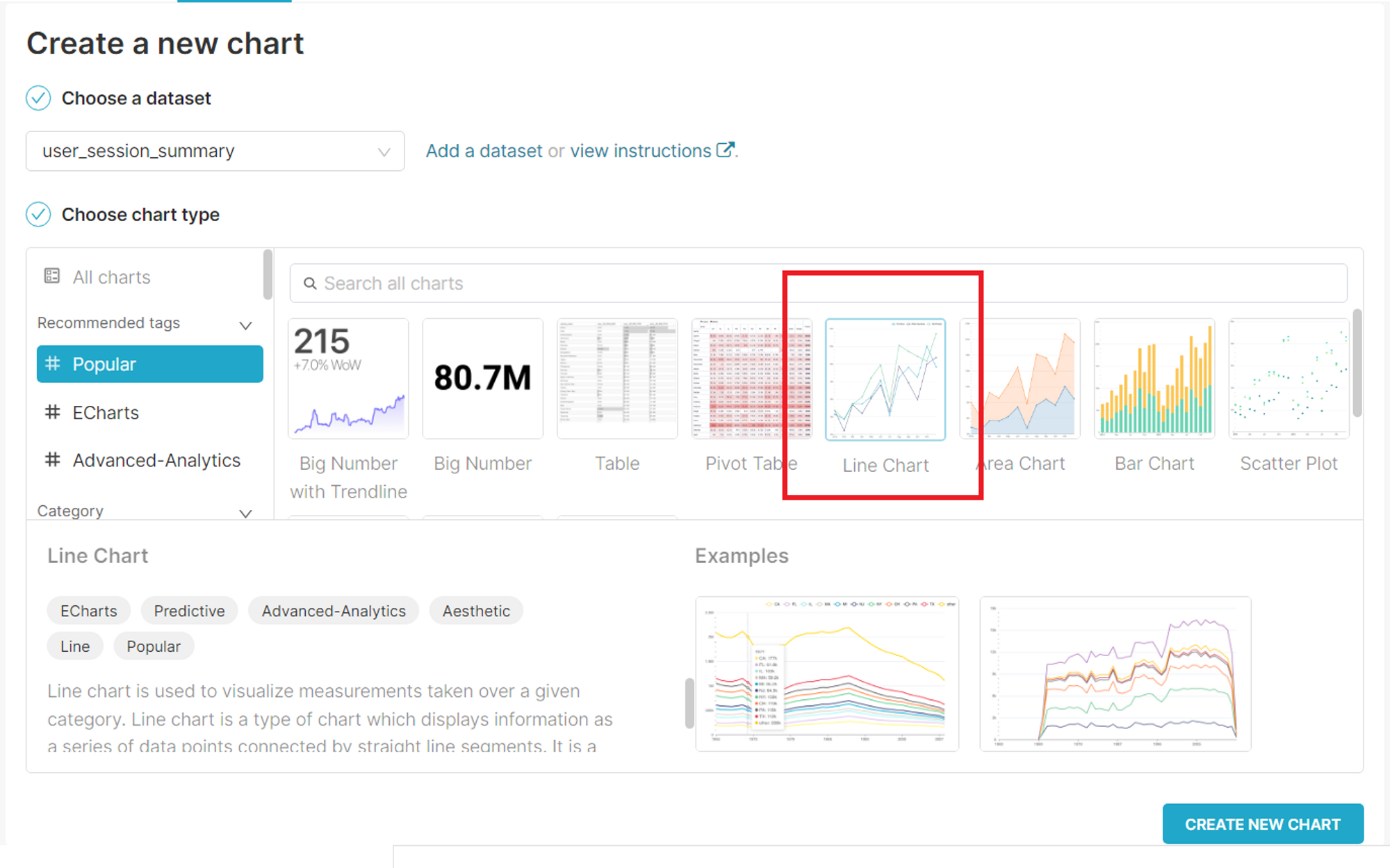 그리고 Chart 목록에서는 Line 차트 선택한다.