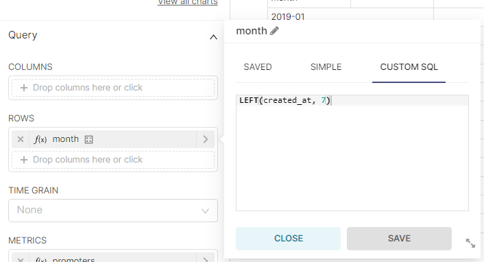 이번에는 X축은 create_at필드에서 Month화하고, METRICS만 CUSTOM으로 지정해주면 된다.