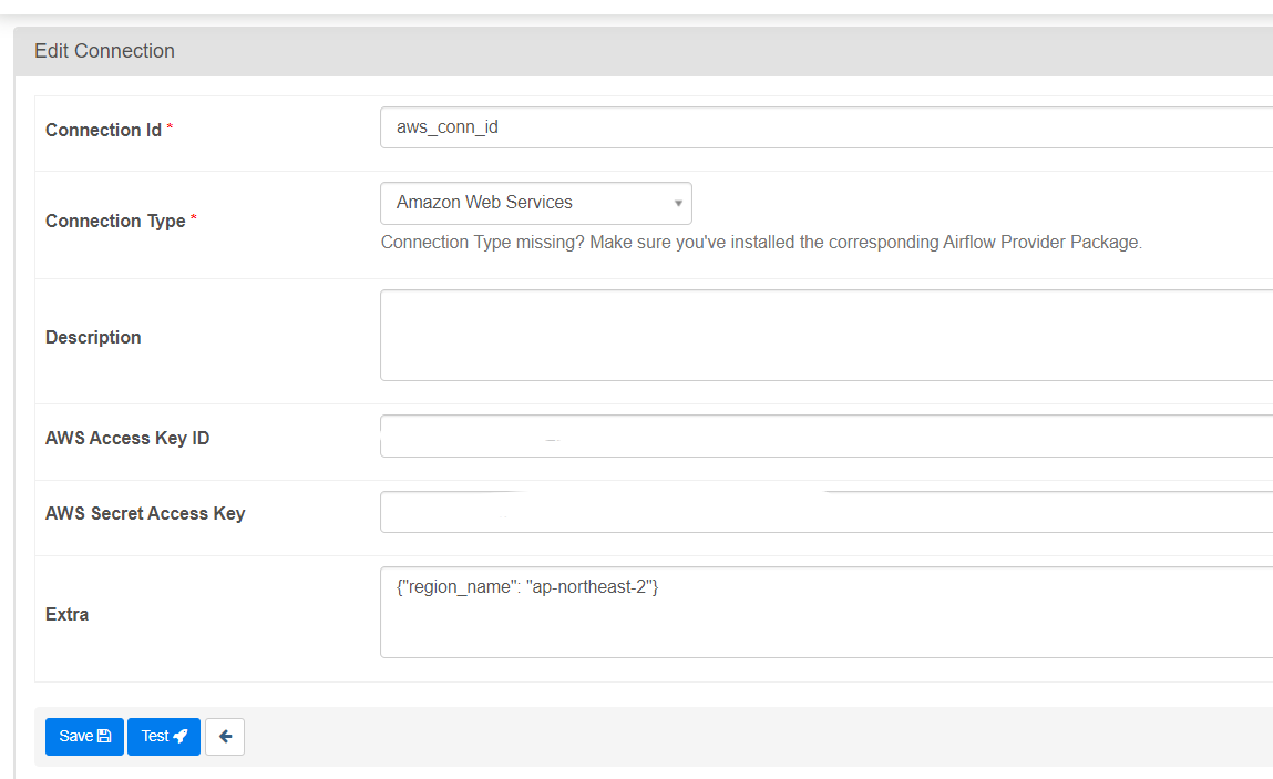 해당 IAM 유저의 Access Key ID와 Secret Access Key를 사용하여 Airflow에서 접근가능하도록 한다.