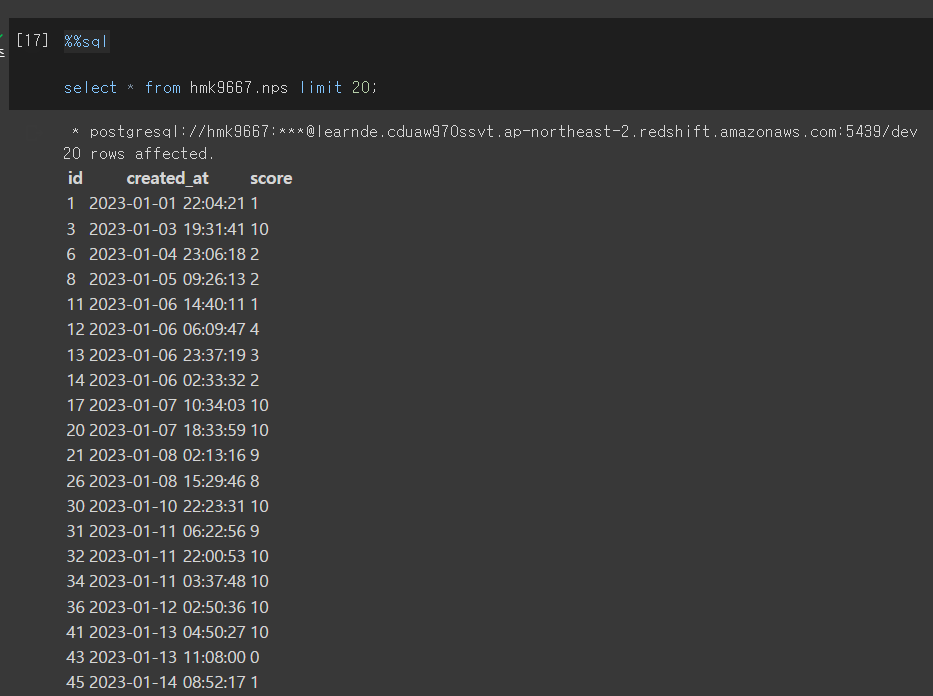 Google Colab에서 Redshift 연결해서 nps 테이블을 생성한다.