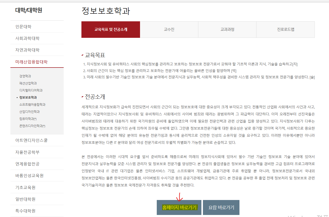 학과 홈페이지가 없는 경우에는 '홈페이지가 존재하지 않음'을 띄우고,