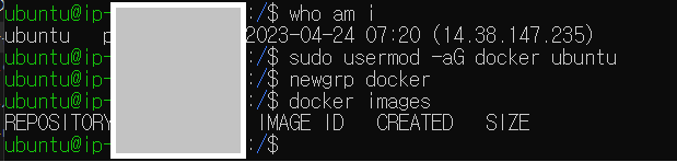 5) Docker 그룹에 sudo를 추가하여 도커를 바로 제어할 수 있도록 함