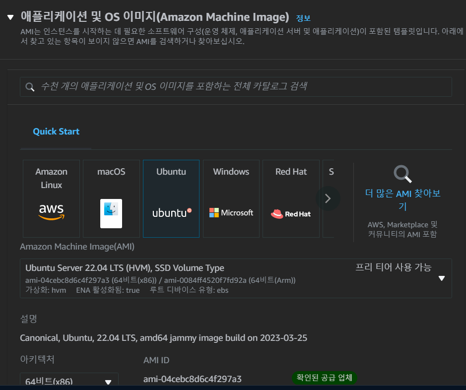 ubuntu lts 22.04 버전으로 선택하여 프리티어를 사용하였다.