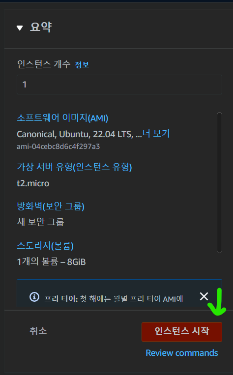 그리고 위에서 만든 서버는 일정 기간동안 무료로 사용할 수 있는 프리티어 버전의 인스턴스이다.
