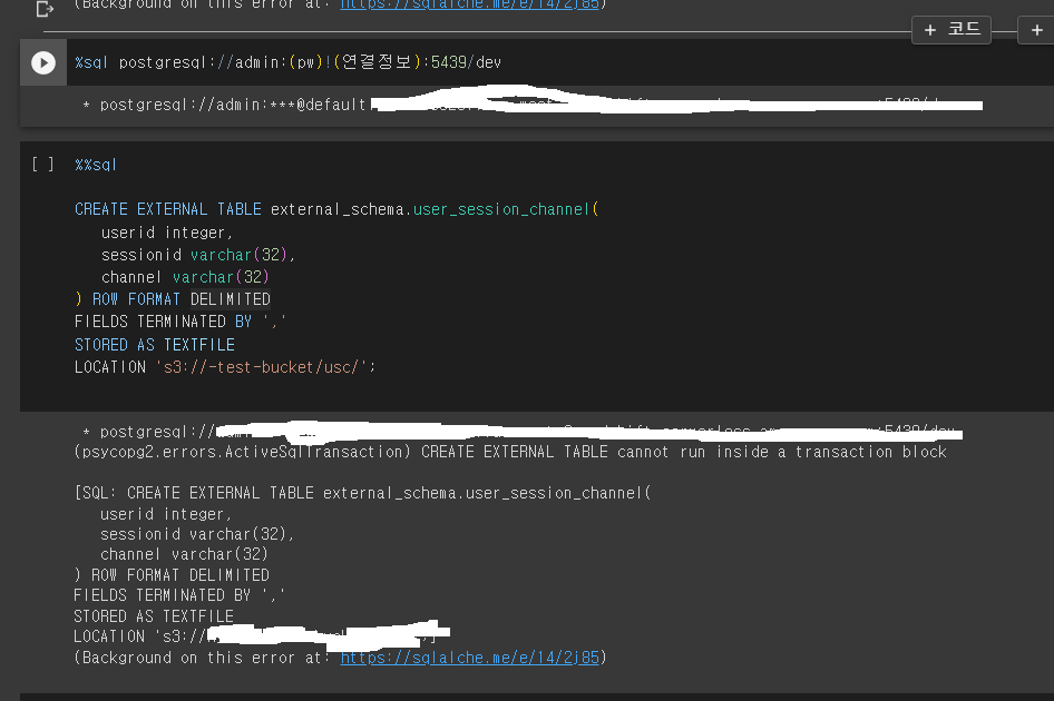 오류명 : (psycopg2.errors.ActiveSqlTransaction) CREATE EXTERNAL TABLE cannot run inside a transaction block